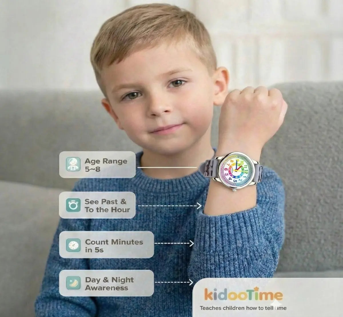 Timely Kids® Grey Camo Rainbow Time Teacher Watch